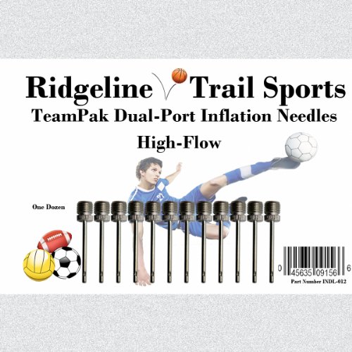 TeamPack Dual Port Inflation Needles by Ridgeline Trail Sports are made to provide increased inflation rates when compared to standard needles . Their unique design includes the side port found on most standard needles PLUS a rounded hollow tip that allows increased airlow. The combination of these two ports speeds inflation of common sports balls. Use with footballs, basketballs, soccer balls, volleyballs, and virtually any sports equipment or play toys that require inflation needles. This generous 12 pack is ideal for team sports. Use one and hand the rest out to your teammates to ensure you are never without a needle again.