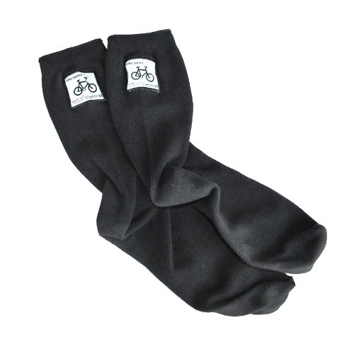 Here's a bright idea for bicyclists who ride at night: Reflective Biker Socks have a reflective bicycle patch sewn onto the back of each sock. At night, simply tuck your pants legs into your socks to avoid jamming the chain. The reflective patches catch the headlights coming from behind, to make you more visible to approaching motorists. Includes one pair of black unisex socks with reflective patches. Made of a breathable, stretchable cotton/elastine fabric blend. One size fits all.