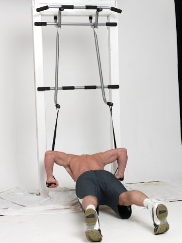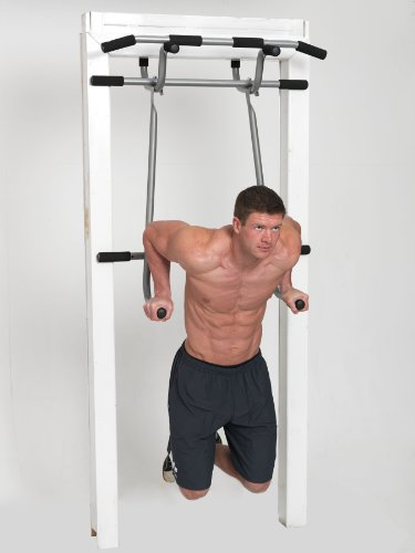 The Ken Shamrock Triple Gym is the only product on the market which allows both dips and pullups in a doorway gym. On top of this is a pair of suspension straps for a full body workout.