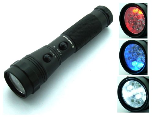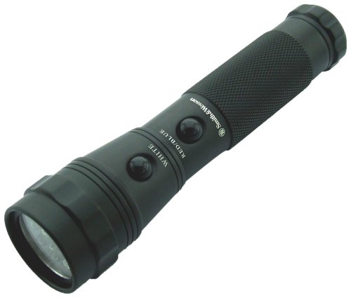 A highly versatile flashlight, the Galaxy 12-LED Flashlight from Smith & Wesson features Six white, two red, two green, and two blue LEDs. The ultra bright white LEDs offer general lighting and visibility within 20 feet, the red LEDs provide night vision, and the blue and green LEDs are ideal for low-light viewing. This flashlight features the latest Multiple Switch Advanced Technology system (MSAT), which allows the white LEDs to operate on one switch while the red, green, and blue modes are activated on a separate switch. This allows you to never second guess which mode you are turning on so you will never lose your natural night vision. The Galaxy includes three AAA batteries and a holster. The limited lifetime warranty guarantees the quality and reliability you have come to expect from Smith & Wesson since 1852.