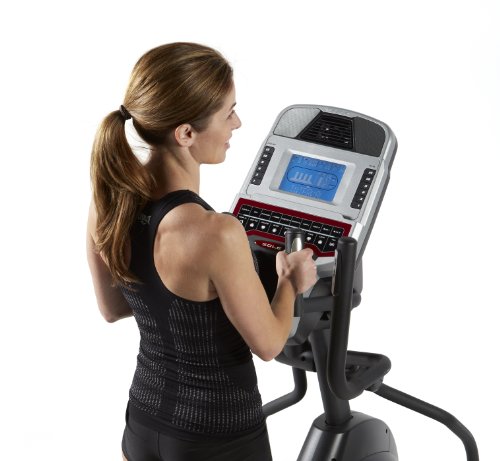 - Elliptical machine provides challenging cardio workout, supported by blue, backlit LDC display that helps you track essential training data