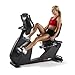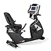 - Semi-recumbent platform and adjustable seat and handlebars; six standard programs, two custom programs, and two heart rate programs; nine-inch LCD console and built-in fan