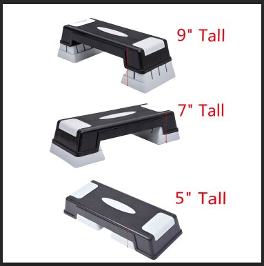 - Platform: 27.6" x 11" , Aerobic Step Trainer Adjusts: 4.7"- 6.7"-8.7"tall