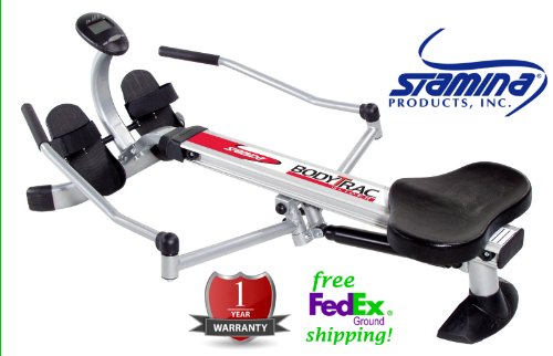 If you have limited workout space, the BodyTrac Glider is compact and portable with a footprint of 23.5 inches wide x 46 inches long. The BodyTrac Glider's rowing arms fold and the rower can be stored in a closet or in the corner of a room. The BodyTrac Glider with its steel frame and aluminum center beam is designed to withstand years of use while giving you a stable, comfortable workout. The ball bearing roller system and adjustable hydraulic cylinder resistance arms mimic the smooth motion of rowing on the water. The multifunctional fitness monitor tracks workout time, stroke count during current workout, total strokes accumulated on the machine, and calories burned during your workout to keep you motivated and on track to reach your fitness goals. In scan mode, the monitor continually rotates from one function to the next displaying each function for six seconds. Rowing is widely known to be one of the best all around activities for cardiovascular fitness and strength. Rowing is a total body workout that is efficient, effective, low-impact and utilizes all major muscle groups including the back, legs, arms, abdominals and buttocks. It is one of the best exercises for building a strong back, as well as one of the most effective low-impact aerobic exercises for increasing your metabolism for more efficient calorie and fat burning without the impact on your joints. The BodyTrac Glider with its steel frame and aluminum center beam is designed to withstand years of use while giving you a stable, comfortable workout. The ball bearing roller system and adjustable hydraulic cylinder resistance arms mimic the smooth motion of rowing on the water. Rowing is widely known to be one of the best all around activities for cardiovascular fitness and strength.Product Specifications: Sturdy, steel frame construction