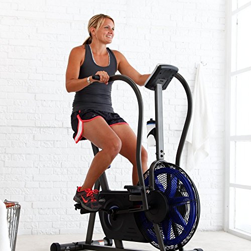 The Stamina Airgometer Exercise Bike is quiet, smooth, and reliable to withstand seriously intense workouts. This air resistance bike is simple to use yet comfortable with the wider, cushioned seat, weighted, textured pedals, and padded dual action handlebars. Cycling improves your cardiovascular fitness and strengthens your entire body including legs, thighs, hips, calves, arms, and chest. The dual action handlebars add an upper body workout and more intensity to your workout to burn calories and fat.