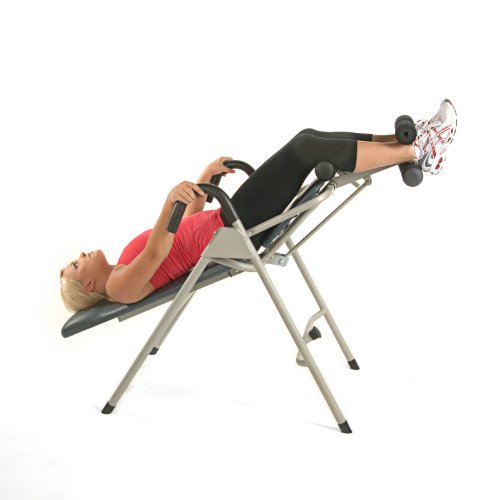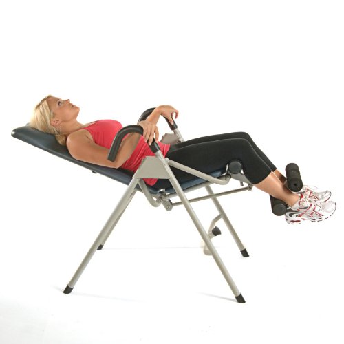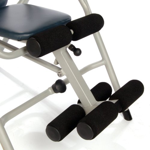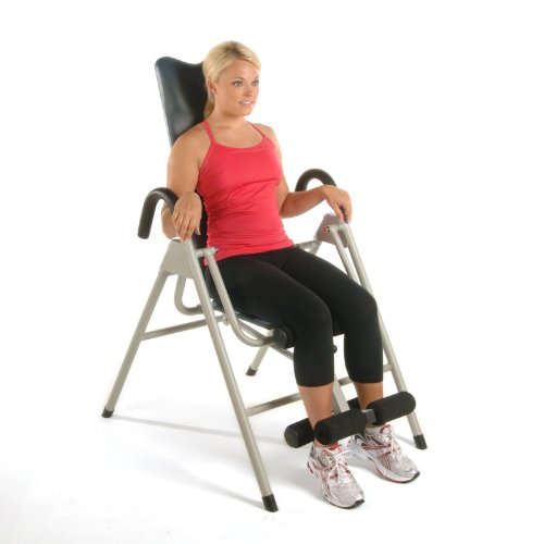 The Stamina® InLine Inversion System looks like a padded, upholstered chair but converts to a flat table as you invert so getting on is as easy as sitting in a chair. Once you are seated and have secured your ankles, you lean back and invert to the angle of your choice. As you invert, the chair converts to a table so you are inverted at a prone position to best stretch and strengthen your back. The padded handlebar assists provide for easier inversion and easier return. Rolled foam pads fasten snugly against your ankles to keep you in place while inverted. The heavy steel construction frame and skid resistant rubber floor protectors add maximum stability and security. The Stamina InLine Inversion System adjusts to fit most heights with a height adjustment beam. Inversion uses your body weight and gravity to stretch and strengthen the back. Features: Leg support adjustment to fit thigh length Heavy-duty steel frame construction Foam-padded ankle support for added comfort while inverted Skid resistant rubber floor protectors for maximum stability and security Padded handlebars for easier inversion and easier return Getting on and off is easy Fits users of most heights Cushioned, comfortable upholstery Maximum user weight: 250 lbs.