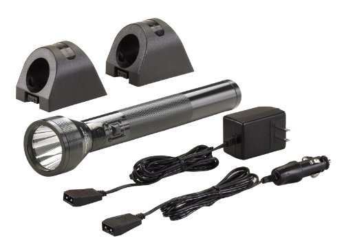 Streamlight SL-20L Full Size Rechargeable LED Flashlight with 120-Volt AC/DC Charger Feature packed, the SL-20L full-sized professional grade, high-intensity, rechargeable flashlight offers 3 microprocessor controlled variable intensity modes, strobe mode, and the latest in power LED technology. The combination of rechargeable batteries and the C4 LED results in one of the lowest operating costs of any full size flashlight made. The push-button barrel switch provides easy one-handed operation of momentary, variable intensity, or strobe modes. Market applications include, but are not limited to, law enforcement, fire and rescue, utility, security, automotive, industrial, sporting goods, and personal use. The SL-20L Flashlight Features Powerful C4 LED Technology Output and Run Times Bright and Powerful C4 LED Technology The SL-20L Flashlight features C4 LED technology for extreme brightness, impervious to shock with a 50,000 hour lifetime. Optimized electronics provide regulated intensity throughout battery charge. The Streamlight engineered deep-dish parabolic reflector produces a tight beam with optimum peripheral illumination. Light Output The SL-20L features four modes of operation: High, with 60,000 candela peak beam intensity and 350 lumens, Medium with 27,000 candela peak beam intensity and 160 lumens, Low with 1,000 candela peak beam intensity and 10 lumens, and a Strobe mode. Battery and Charging The 5-cell 6-volt Ni-Cd sub-C battery is rechargeable up to 1,000 times and fully recharges in 7-hours. Illuminated switch housing indicates charge status; steady for charging and blinking for charging complete. The SL-20L flashlight features 2-hours of run time on High mode, 4-hours of run time on Medium mode, 50-hours of run time on Low mode and 4-hours of run time on Strobe mode. Built to Last Designed for durability, the SL-20L flashlight features anodized machined aluminum construction with a knurled barrel for a sure grip and an O-ring sealed unbreakable polycarbonate lens with a scratch-resistant coating. It is IPX4 rated for water resistant operation and 2-meter impact resistance tested. A push-button barrel switch provides easy one-handed operation Dimensions and Weight Weighing 1. 7-pounds with the battery the SL-20L flashlight has a length of 13. 1-inches, a major diameter of 2. 5-inches and a body diameter of 1. 5-inches. Additional Features Serialized for positive identificationAssembled in the USA Includes battery and 120-Volt AC/DC chargerMeets applicable European Community directives