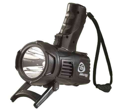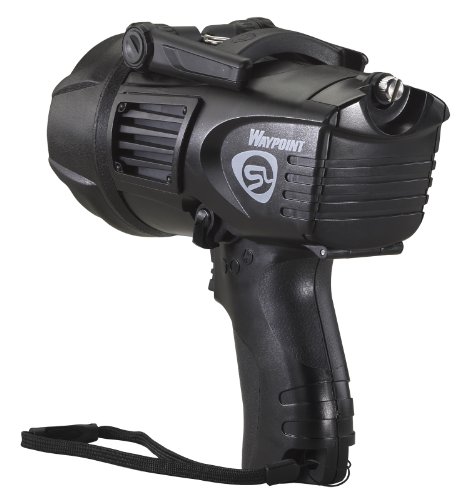 Streamlight Waypoint Spotlight with 120-Volt AC Charger, Black Handheld and powerful, the Waypoint Lithium Ion Rechargeable spotlight offers high and low intensity modes, emergency signal mode and the latest in power LED technology. The spotlight provides portability and long run time using a rechargeable lithium ion battery, making the Waypoint Lithium Ion the perfect choice for a variety of applications. Weight balanced design virtually eliminates user hand fatigue and the light will float if dropped into water for easy retrieval. The trigger-style switch with momentary or click on/off operation. A secondary rotary switch selects High, Low and Emergency Signal functions. The rugged and powerful WayPoint rechargeable spotlight in Black Output and run times Bright and Powerful LED Technology The Waypoint features C4 LED technology for extreme brightness and is impervious to shock with a 50,000-hour lifetime. LED solid state power regulation provides maximum light output throughout battery life. The Streamlight engineered deep-dish parabolic reflector produces a long range targeting beam with optimum peripheral illumination. The Advantages of LED Light An LED is ideal for a light that gets used on a daily basis. No need to worry about breaking the light, since there is no glass or filament, and LEDs rarely require replacement because they can last a lifetime. Save time and money on batteries as well because they will last much longer with an LED than with a regular light bulb. Battery and Charging The battery fully recharges in 4 hours and is rechargeable up to 800 times. An on-board safety control circuit prevents overcharge. Use only the Streamlight supplied charger. The Waypoint also features a charge LED indication: LED Red — Charging; LED Green — Charged. Built to Last Designed for durability, the Waypoint Rechargeable Pistol-Grip Spotlight features a high-impact polycarbonate housing, a cushioned-grip handle, and an unbreakable O-ring sealed polycarbonate lens with a rubberized lens protector. It is IPX8 rated for waterproof operation at 2 meters of submersion for a period of 30 minutes. The Waypoint features an integrated stand for hands-free scene lighting Dimensions and Weight Weighing only 1.52 pounds, the Waypoint is so light that it floats. It has a length of 6.75 inches, a height of 7.14 inches, and a head diameter of 3.62 inches. Additional Features Light floats if dropped into water Integrated stand for hands-free scene lighting Includes battery, 120-volt AC charger and high-strength adjustable lanyard Most models meet applicable European Community Directives