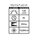 ATTRIBUTES Batteries Included: Yes Bulb: LED C4 Burn Time: 3.50 Hours Finish: Black Material: Polymer Output (lumens): 150 Overall Length (inches): 5.65 Power Source: CR123.50A x 2 Submersible: Water Resistant Switch: Tail Cap On/Off