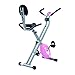 Stowaway recumbent bike has a folding frame for easy storage; and an adjustable magnetic resistance system. The display features Time, Speed, Distance, and Calories. Adjustable seat fits various user heights and has a cushioned seat with back for comfort