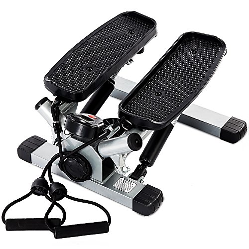 Twist Compact Stair Stepper with Resistance Bands. Work out at home or office with this compact stepper. Fitness never looked or felt so good. Take yourself to the next level. Features: Adjustable tension control Exercise bands to work out upper body while stepping LCD monitor tracks workout statistics Sturdy steel frame Maximum user weight capacity is 250 lbs. Materials: Steel Materials: 19"L x 16"W x 8"H Weight: 21lbs