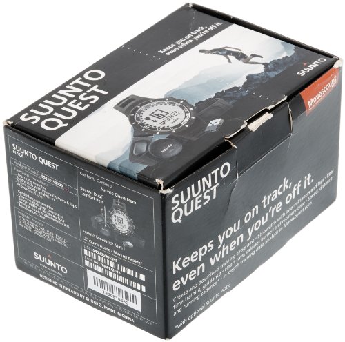 A way to personalise your training sessions, download training programmes, and then share and monitor your results and progress. All of this technology, and more besides, is featured in a watch and monitor that sits compactly on your wrist, in a rugged design made for the outdoors.With the Suunto Quest you can partake in real time training intensity, or speed guidance based on a training program, and then upload data to your computer and to the relevant site. This watch will also suggest appropriate recovery times between sessions depending on your performance, just as a personal trainer would.This comes with a Movestick Mini; a very small and compact USB stick that you can use to transfer the data from your HRM to your computer. It also includes a dual comfort belt.Features:*Time, dual time, date, weekday, alarm*Back light*Multi-language UI*Button lock*Low battery indicator for watch, HR belt and POD*Measurement unit selection*User replaceable battery and strap*Hard coated, scratch protected lens*Water resistant to 30 mConnectivity and customizability:*Wireless 2-way data transfer, ANT transmission*Wireless connection with Movescount (data transfer to and from Movescount)*Customizable settings in Movescount*Customizable display in Movescount*Create/choose and download training program from MovescountIn the Box:*Suunto Quest HRM*Dual Comfort Belt*Movestick Mini