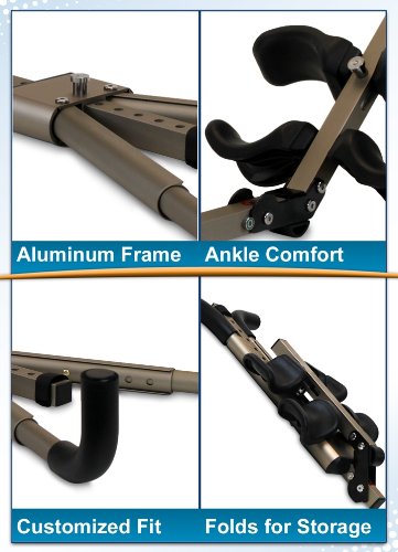 - Contoured foot supports secure your ankles while you pull the leverage handles