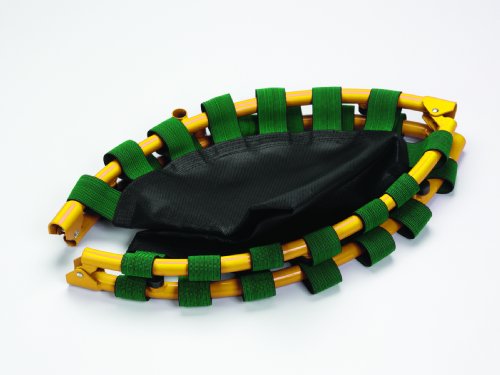 3 years & up. Simply open up the frame, screw on the legs, bolt on the handle and it is ready for use. Both frame cover and handle grip are padded for extra safety and the durable frame finish allows for indoor and outdoor use. Easy to store when not in use - just unscrew the legs and remove the handle bar. Instructions and tools included. Suitable for weight up to 150 lbs. 36" diameter.
