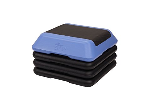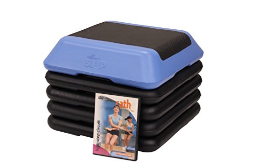 Here comes the high stepper! The Step F1080 High Step features four adjustable risers that allow multiple height adjustments--from 4 to 12 inches--for maximum aerobic workout. The stepping surface measures 13” x 9”. It has a slip-proof, durable mat on top, and non-marking rubber floor pads on the bottom of the platform and the blocks. The blue and gray platform and blocks are made of high density polyethylene, and they support up to 275 pounds. This package also comes with the 45-minute High Step Complete Workout DVD featuring fitness trainer Cathe Friedrich.