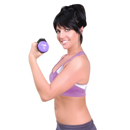 - The dumbbells come in purple and black to compliment most workout outfits