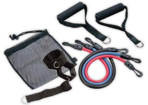 The Ultega Multi Strength Door Gym Set gives a unique range of motion which gives the body a great workout and a better overall tone. Three resistance bands with variable strengths for advanced workouts helps strengthen your back, shape your chest, trim your arms, tone your legs and flatten your abs. Easily attaches to most doors. All you need to do is slip the loop over the door and the stopper will secure the loop strap in place once the door is closed.