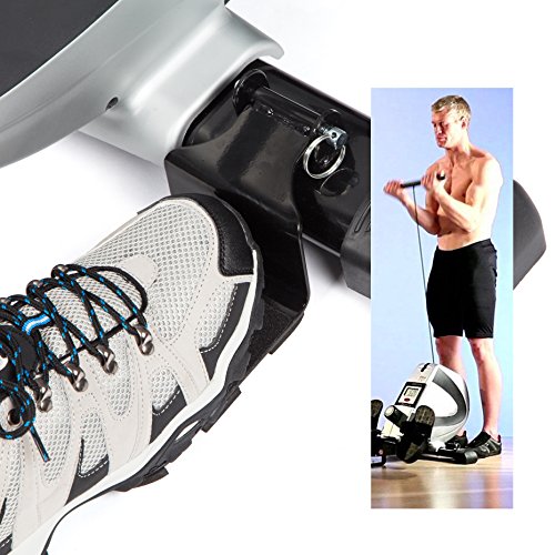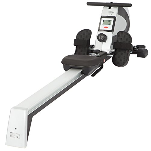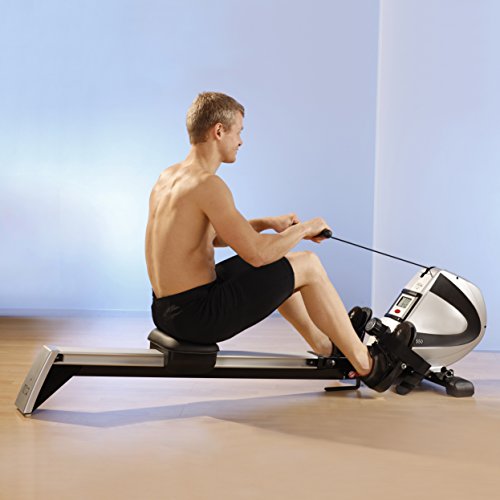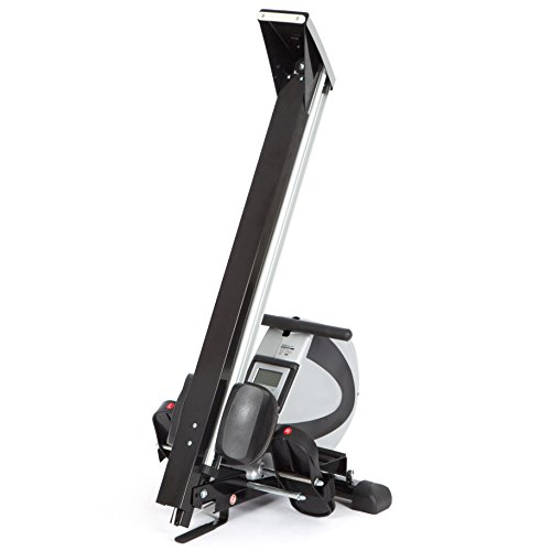 Space-saving designed rowing machine for flowing rowing motionsRowing machine + upper body trainer in one machineIntegrated pulse receiver (wireless) for wireless pulse measurement (optional); 8 different grades of resistanceTraining computer with versatile functions: calories, time, scan, beats, total beats, beats/min - 13 lbs. (6 kg) flywheelMax. user weight up to approx. 266 lbs. (120 kg); dimensions erected: approx. 75 x 24 x 19 in (192 x 60 x 49 cm).