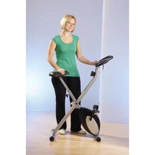 The Ultega F-Bike is a folding bicycle trainer that is fast and easy to build. 8 different resistance levels ensure a challenging workout and an advanced LCD display keeps the participant up-to-date with the latest fitness information including time, calories burned, speed, distance run and pulse rate. You can also measure your pulse via hand sensors that are located on the handlebars. The saddle height can be adjusted individually for each person and the bike can be stowed to save space by folding the two-way bearings. Holds a maximum user weight up to 220 pounds.