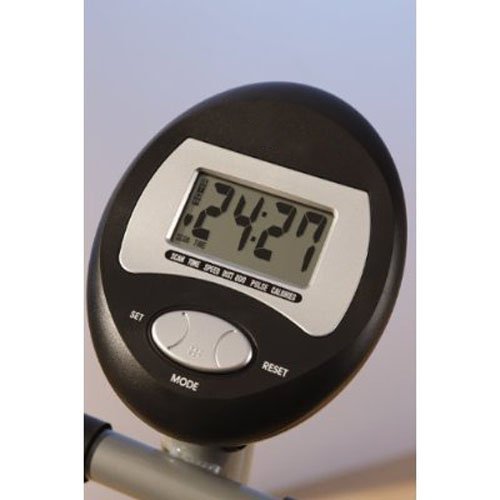 - Multi-function LCD display with scan, speed, distance, time, and calories burned
