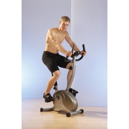 The Ultega Racer 100 Exercise Bike is ideal for cardiovascular training and optimal fat burning. With low entry, a comfort saddle, optimally shaped handles, and an ergonomic movement process, each training session can be completed efficiently so the participant gets the best workout possible. With an adjustable seat the height can be perfectly adapted to each user. An LCD display with computer functioning capability measures time, speed, distance, total distance, and calories burned. With a footprint of 52 x 21 x 32 inches and an 11 pound flywheel, this product can be used virtually anywhere.