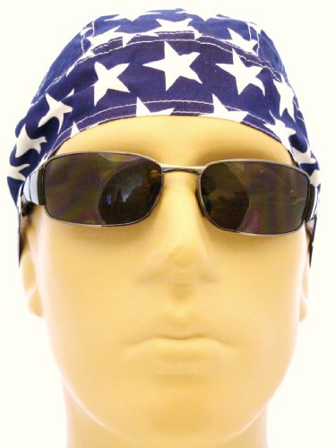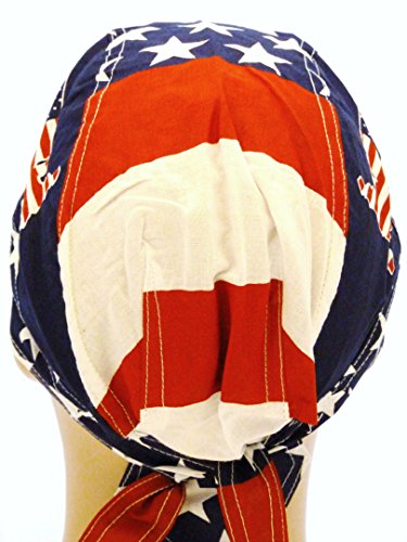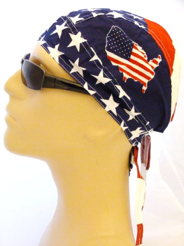 Show your patriotic American spirit today with this comfortable head wrap. Lightweight, 100% Biker Cap, aka durag, doo rag, skull cap. One Size to Fit many Men, Women and Teens. One side has an inverted United States image. Suitable for Athletes, Medical, Healthcare, Bikers, Truckers, Painters, Restaurants and Food Workers to Keep Hair Out of Face. Hand wash in cold water with mild detergent. Air dry to lessen fading, bleeding, shrinkage or other damage. Makes a great Patriotic gift!