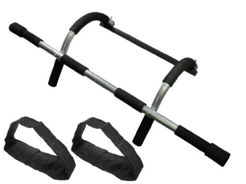 CHIN UP PULL UP SIT UP BAR ultimate doorway gym is a multifunction training system that raises the bar on upper body exercise. Now you can turn any door into your own personal gym in just seconds. Its unique design wraps around your door frame and uses leverage so there are no screws and no damage to your door. Begin your routine in the doorway with chin-ups and pull-ups to develop and strengthen your shoulders, arms, back and lats. Take your Gym to the floor for deep push-ups and a greater range of motion without strain on your wrists.Gym,s sturdy base is ideal for triceps dips on the floor. Finish your workout at the base of your door with gut-blasting crunches for rock-hard abs and obliques. Plus, with 3 different grip position narrow grip, wide grip and neutral you can switch up your routine and keep challenging your muscles.