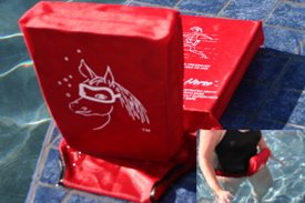 Are flotation belts too constricting? Do they ride up and cause discomfort? The Water Horse is a comfortable alternative to the flotation belt. - made of a latex free material - shaped to provide an occupant a comfortable cloth seat in the water - durable - holds the body vertical for deep water exercise - one size fits all " I just received the waterhorse and I am completely thrilled with this product. We do our water aerobics suspended on noodles and the waterhorse is a wonderful improvement!! My motion in the water is less inhabited and the turns has imporved 100%. I like it so much I have just ordered another one!!! " - Joey " We just purchased the WaterHorse Workout DVD. It is a vigorous workout and so much fun to use with my new waterhorse!!! The warm-up, and cardio routines work out every part of the body. I was surprised with the cool- down routine using the waterhorse. It was unique anad relaxing. (Oh, we use the waterhorse to do Waterworks 1 and 2. We have to do all our workouts suspended and the waterhorse works so much better than the noodle) " - Joey, USA "I am a deep water instructor and got my waterhorse last year and haven't looked back! I have convinced a lot of my students and the YMCA where I work to purchase them. Everyone raves about them and swear they will never use a belt again. It's amazing how the waterhorse adjusts your posture correctly and just makes the work out so much more pleasant! " - Amy, Milford CT This device is made for in pool use ONLY and is NOT a lifesaving device.