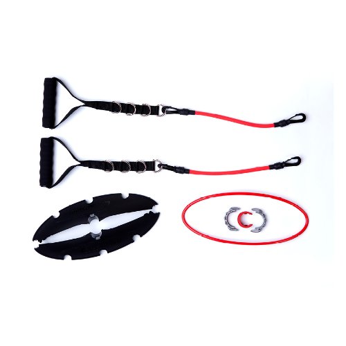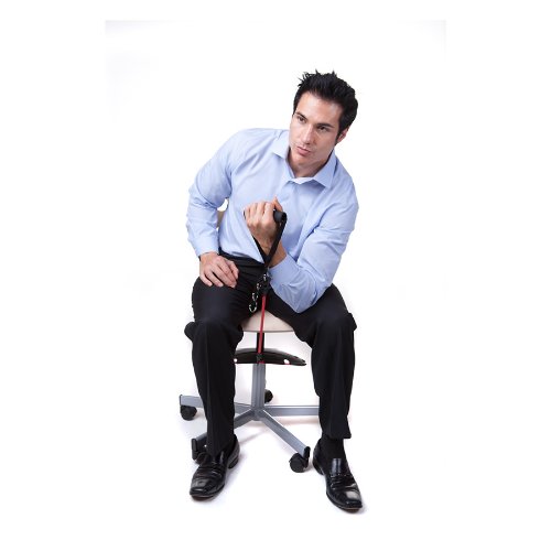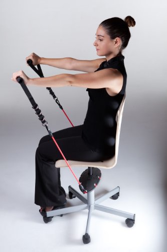 - A Patented chair attachment that uses resistance bands with handles to get you tone
