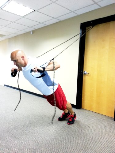 - This fully adjustable Trainer has two workout Handles with built-in 1-1/2" wide Foot Loops, and a separate Door Anchor. Use it indoors or outdoors, at home or on the road.