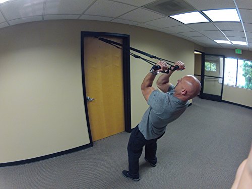 - This system also comes with four different anchors for maximum versatility: One 8 ft. Anywhere-Anchor Cambuckle Strap with built in Door Anchor - perfect all-around anchor with the ability to fast (1 cambuckle) adjust the height of your work-out. It attaches to any vertical or horizontal fixtures such as a tree trunk, tree branch, beam, or even a door.