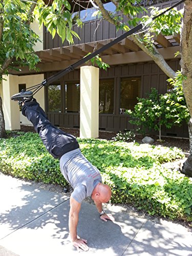 Build body strengthening with your own weight. Very portable and easy to use and very adjustable. Perfect for beginners to expert. The cord at the Handle rotates the center strap 90deg. so that the webbing lays flat over your upper arm when doing push-ups - much more comfortable than the competitions knife-edge cutting into your upper arms.
