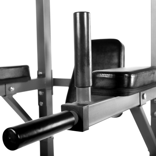 XMark Power Tower with Dip Station and Pull Up Bar XM-4434 The XMark Power Tower is the power tower you will want to commit to as each passing workout brings you closer to your ideal body. As a strength builders dream, the power tower is designed to define your upper body and build powerful ab and back muscles. The chin up/pull up bar cuts up your upper back and arm muscles, ergonomically-spaced twin dip handles work your triceps, raised push up handles define the chest and a vertical knee raise station enhances your abs while strengthening your core. All handles on the XMark Power Tower with Dip Station and Pull Up Bar are covered in non-slip rubber to eliminate hand slippage as you build your perfect body. Make the change in your body today with XMark, the mark of excellence. Features: - Push-Up handles with rubber grips - Dip handles with rubber grips spaced 21.5” apart - Rubber covered grip posts for vertical knee raise - Narrow and wide grip pull-up bar - Extra thick 2” Hi-density cushions - Double stitched, tear-resistant Duraguard Vinyl - Tough skid resistant feet to protect your floor against damage - Baked-on scratch resistant powder coating finish - Perfect for In-home use Specifications: - Back cushion dimensions: 14” L x 11” W - Forearm pads 12” L x 4” W - 14 gauge 2” x 2” steel construction