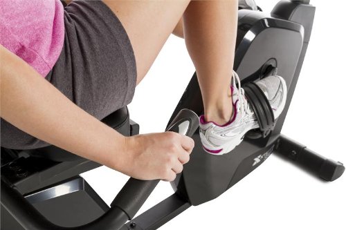XTERRA SB2.5r Walk-Thru Recumbent Bike The XTERRA SB2.5r walk-thru recumbent bike is ideal for all users looking to lose weight, tone up or stay in shape. It's easy to get in and out, and the densely padded molded foam seat will give you comfort and support. The reliable poly v-belt along with the 22lb flywheel system is smooth and quiet and with 24 resistance levels you can challenge yourself as you reach your fitness goals. A large, easy to read dual color backlit LCD display also incorporates speakers for your MP3 player. Features • Convenient walk-thru design • Smooth and quiet poly v-belt • 22lb heavy duty flywheel system offers premium fluid motion • Oversized, self leveling pedals • 3-Piece quality pedal crank • Comfortably molded seat bottom and large back pad • Seat adjustments - fore/aft • 24 programs including 2 heart rate programs, 1 body fat program, 4 user-defined programs and a manual program • Built in heart rate receiver works with chest strap (not included) for optimal conditioning • Large 5-Inch x 2.5-Inch dual color backlit LCD display is easy to read • Audio jack and speakers for MP3 player built into the console • Hand grip pulse sensors (monitor your heart rate) are conveniently mounted on the handlebars to keep your workouts safe and effective • 24 levels of resistance provide a variety of exercise options for all fitness levels • Magnetic resistance system is friction-free for smooth, quiet, and maintenance-free operation • Front transport wheels for moving your equipment • Rear spin out levelers correctly balance the recumbent bike on most floors • Heavy-duty steel frame • 110v plug-in required • Weight limit: 300 lbs • Assembled dimensions - LWH: 54.3-Inch x 25.2-Inch x 43.7-Inch • Assembled weight: 132 lbs • Warranty: • 5 years frame • 1 year parts