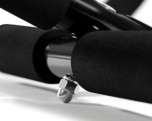 Strengthen your back, biceps, and other upper body muscles in the comfort of your living room or dorm with Yes4All workout bar. Designed to fit conveniently in most doorway frames or sit on the floor for pushups, dips, and sit-ups, the Yes4All is an ideal choice for people who want to get fit without buying expensive, space-intensive weight sets. When installed in the doorway, the device lets you perform pull-ups and chin-ups, with three grip positions--narrow, neutral, and wide--for working the inner and outer back. Once you're done with your back workout, you can quickly move the Yes4All to the floor, where you can perform pushups while facing down, tricep dips while facing the other way, or sit-ups using the Yes4All for foot stability.